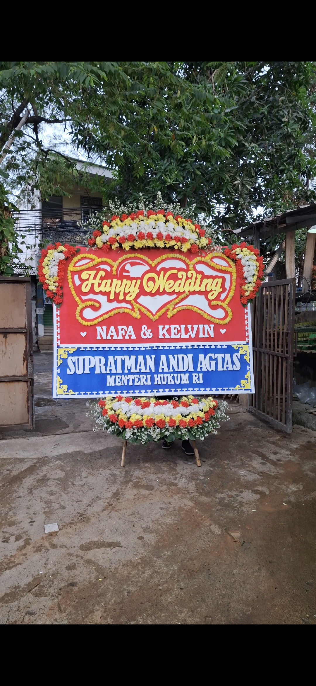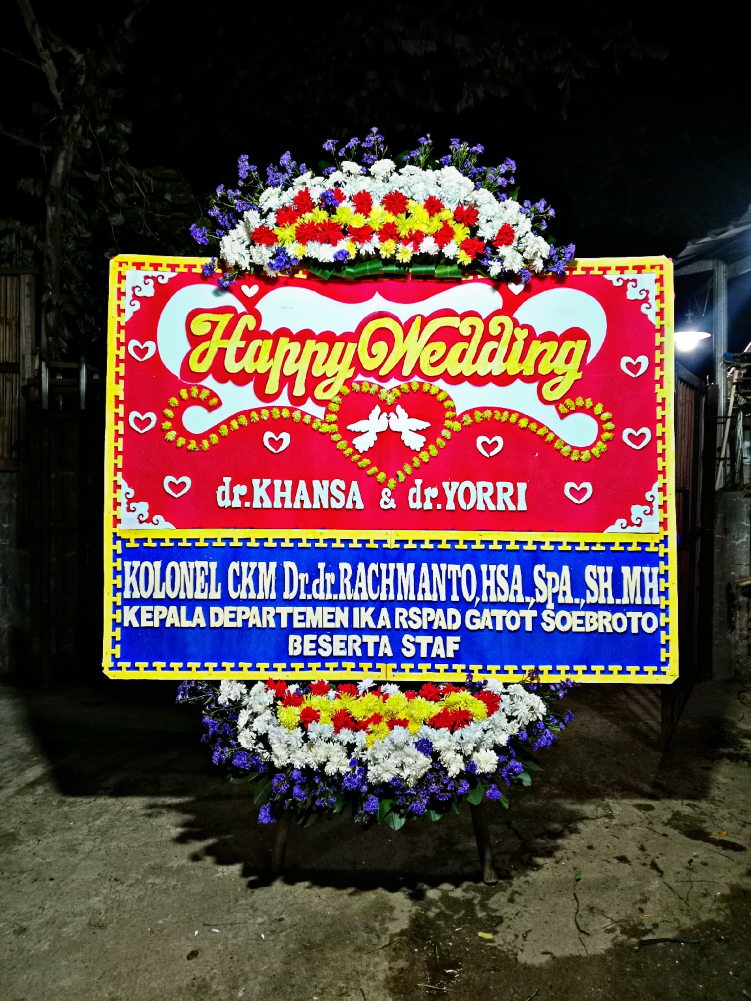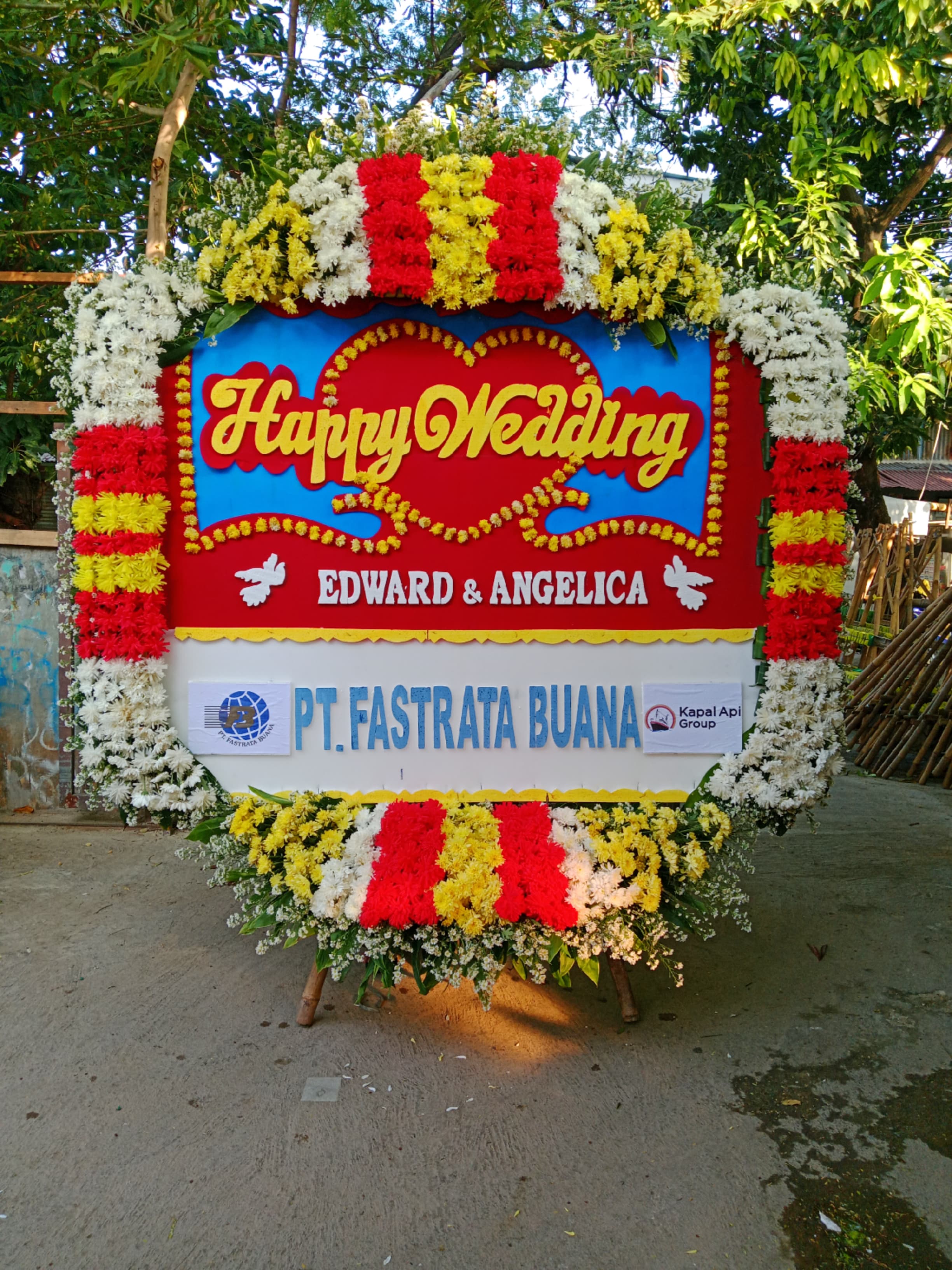 bunga papan wedding, sukses, ulang tahun, dukacita, dll dengan bunga di atas dan bawah.