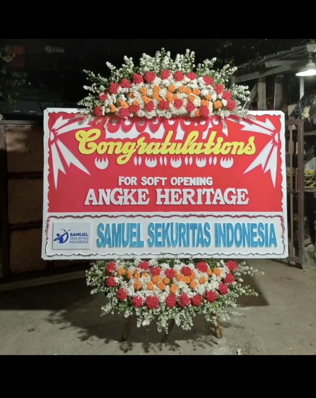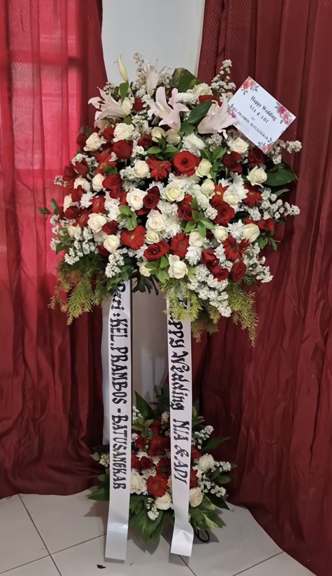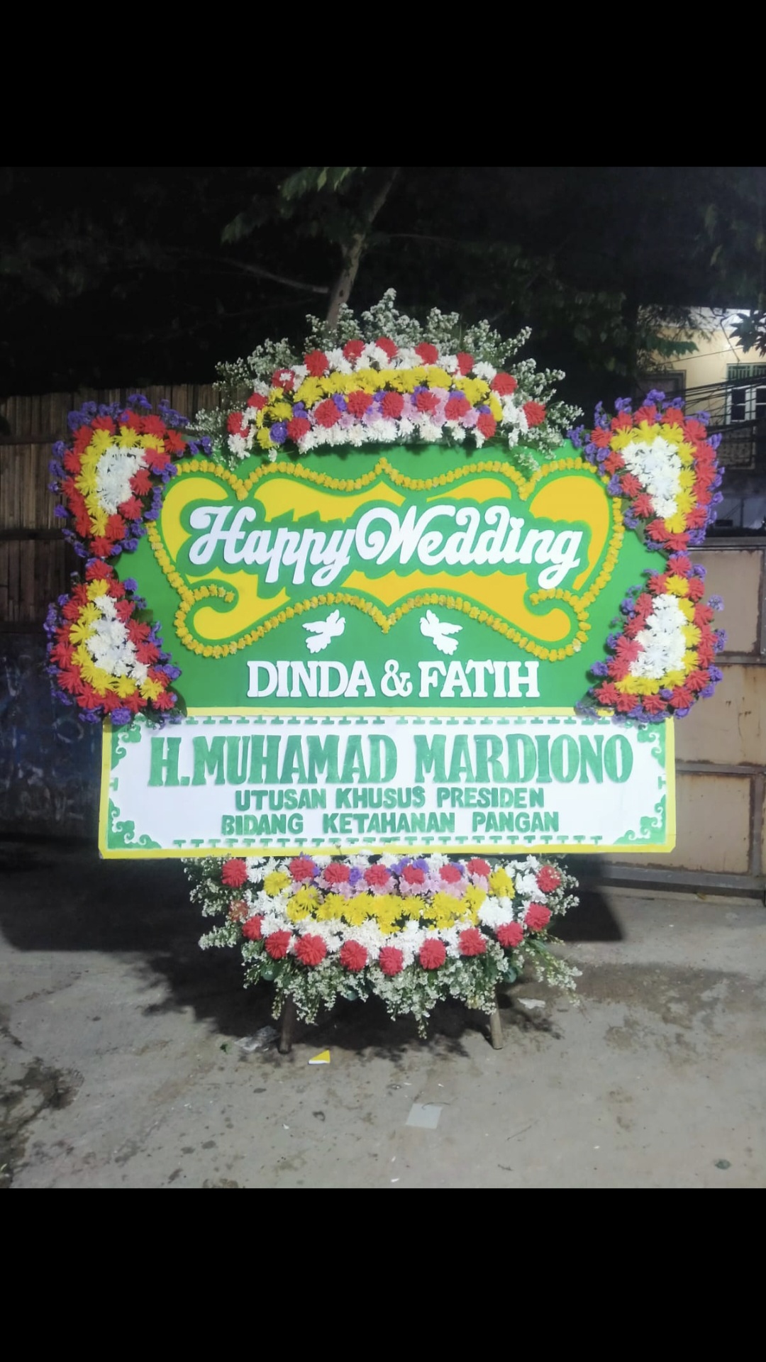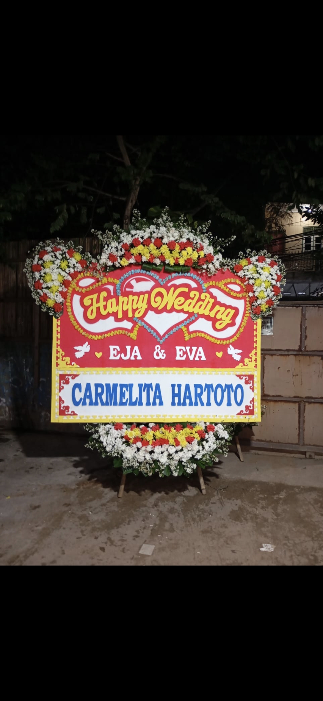 bunga papan wedding, sukses, ulang tahun, dukacita, dll dengan bunga di atas dan bawah.