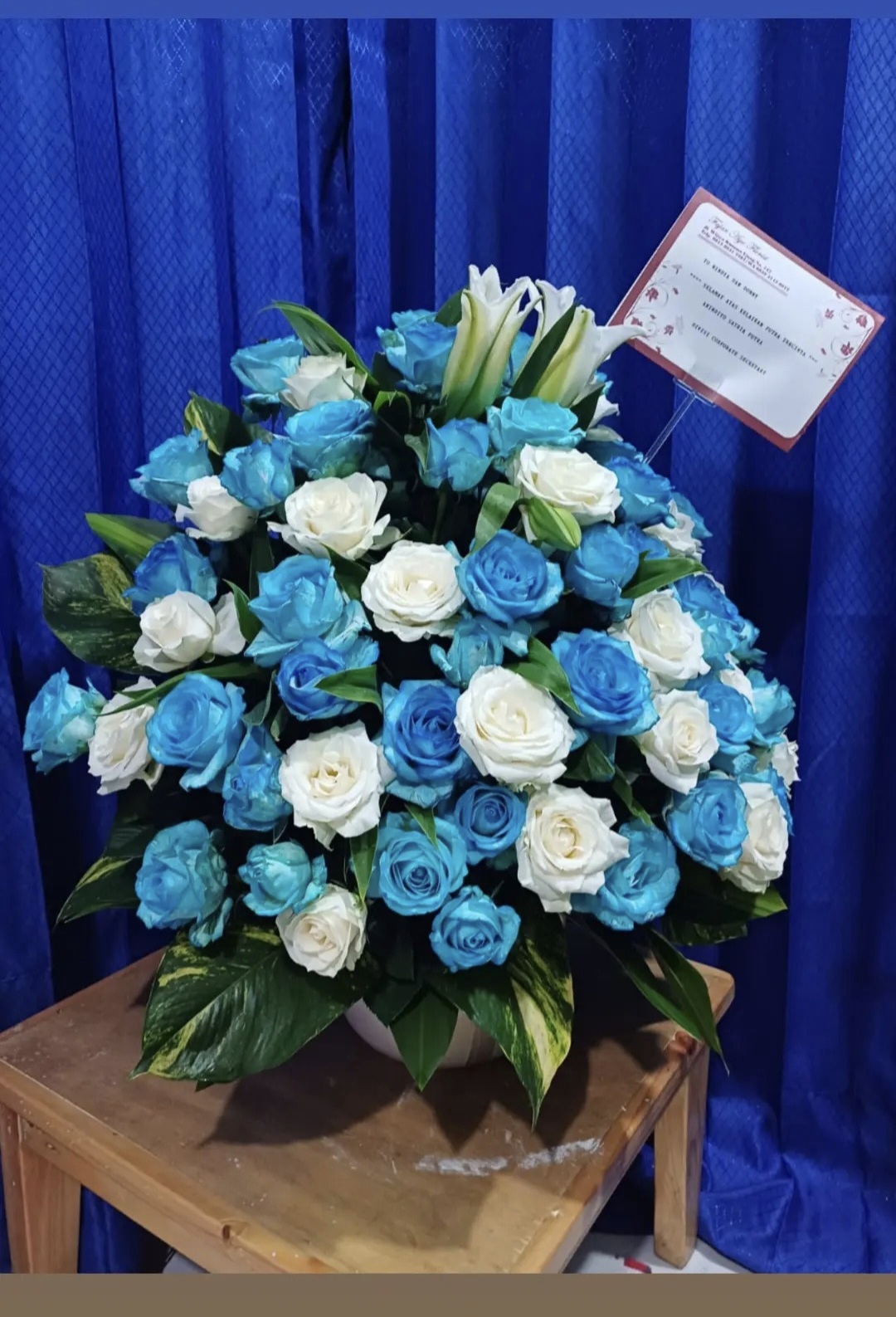 Pesan Sekarangbunga standing tinggi 120cm dengan bunga atas dan bawah cocok untuk dukacita, sukses dll.